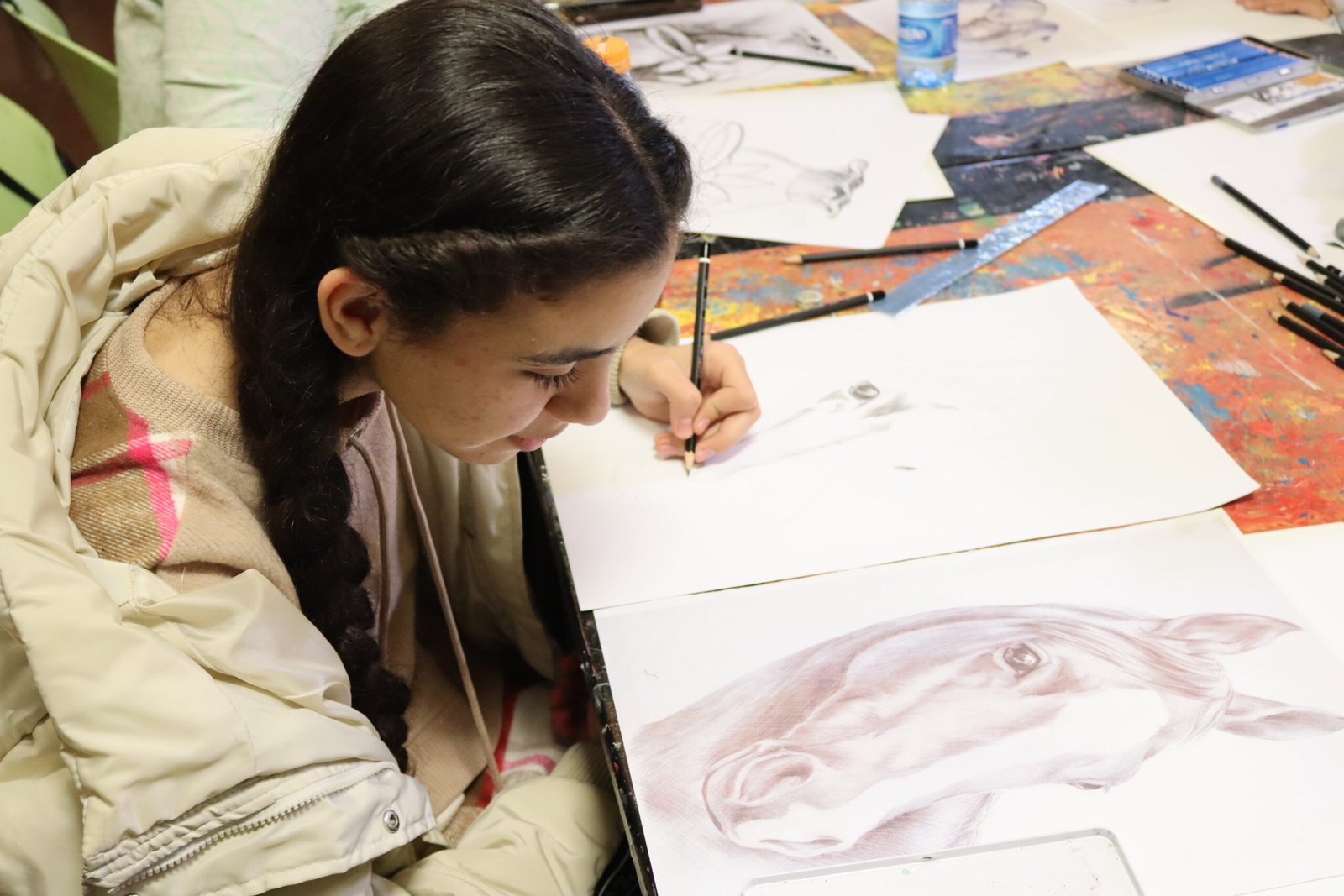 هو نوع من أنواع الفنون التشكيلية الأولى، والخطوة الأهم للانتقال إلى عالم الألوان. يتم خلال الورشة التعريف بالتظليل وأنواع الخطوط، وهي من عناصر العمل الفني المهمة باستخدام الإمساك الصحيح للقلم، والتعرف على اتجاه الضوء والظل, كما سيتم تعريف الرسم بالقلم الرصاص، وماهية الأشكال التي يمكن رسمها به، وكذلك التعرّف على أدوات الرسم. في نهاية الورشة سيتمكن المشاركين من انتاج عمل فني كامل متكامل.