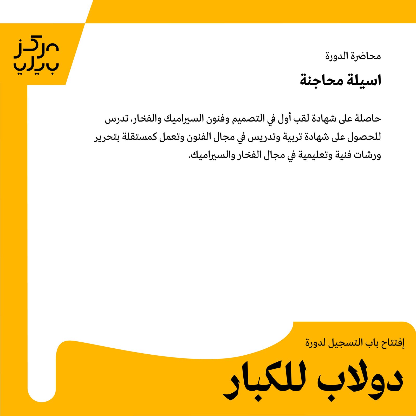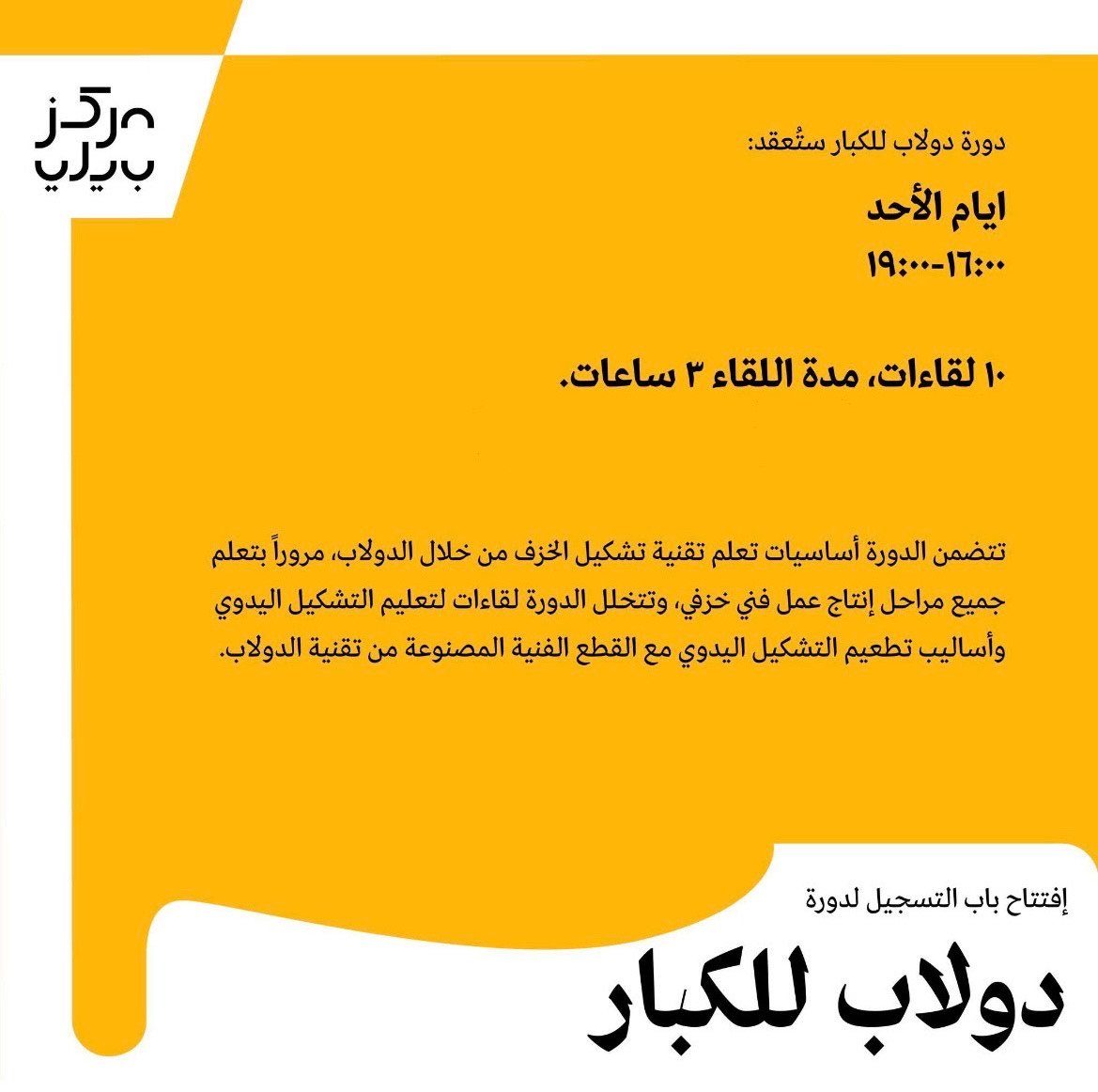 دورة الكراميكا و الدولاب تتضمن الدورة اساسيات تعلم تقنية تشكيل الخزف من خلال الدولاب, مرورا بتعلم جميع مراحل انتاج عمل فني خزفي, وتتخلل الدورة لقاءات لتعليم التشكيل اليدوي واساليب تطعيم تشكيل اليدوي مع القطع الفنية المصنوعة من تقنية الدولاب. التصنيف: دورات