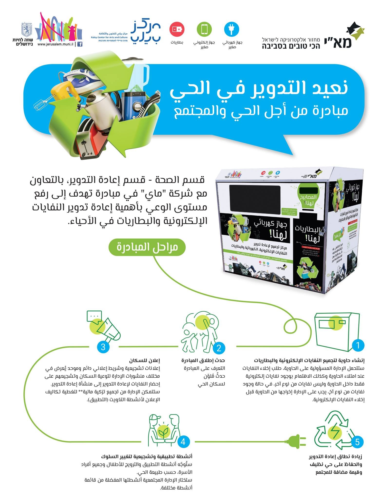 يضمّ المركز حاوية ثابتة وموجودة بشكل دائم لإعادة تدوير النفايات الإلكترونية والبطاريات، وهي متاحة للاستخدام من قبل الزوّار والمجتمع المحلي. وقد تم افتتاح هذه النقطة ضمن تعاون مشترك مع قسم إعادة التدوير في البلدية وشركة «ماي»، بهدف تسهيل عملية التخلص الآمن من النفايات الإلكترونية وتشجيع إعادة تدويرها.